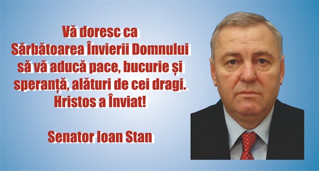 Mesajul d-lui senator Ioan Stan cu ocazia Sărbătorilor Pascale