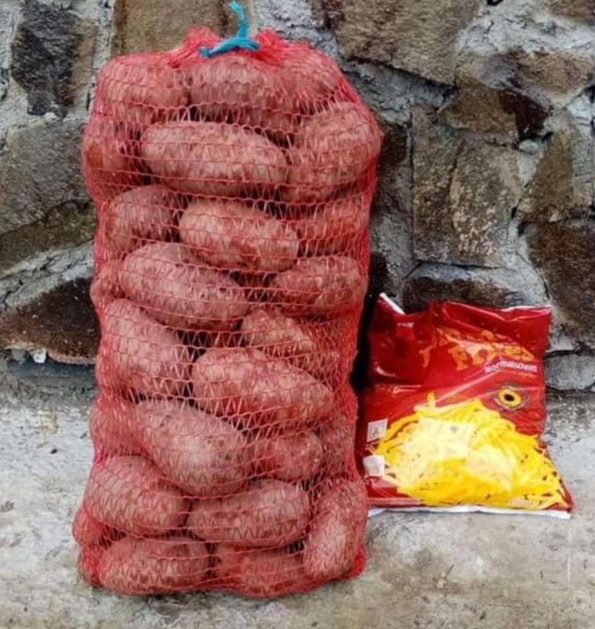 Acest sac de cartofi costă 10 lei în piața din Vicovu de Sus, jud. Suceava. Punga aceea, tot de cartofi, costă 5,99 lei, la unul dintre hipermarket-urile străine care operează în România.