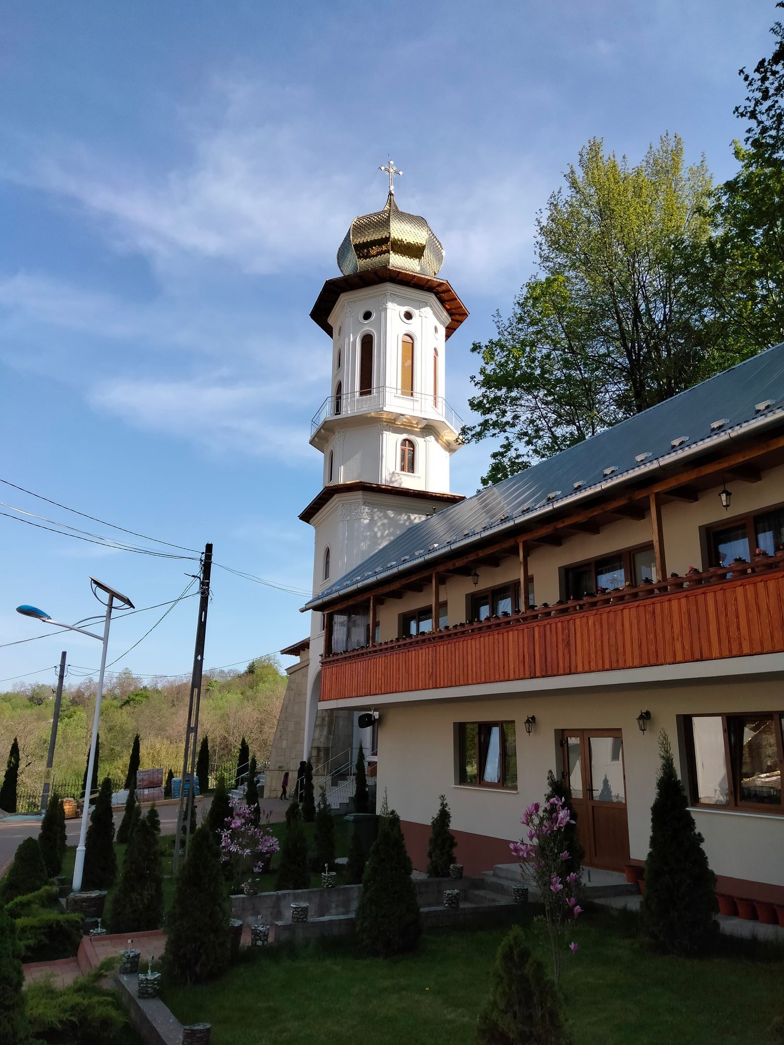 Cu aceste amintiri am pornit la drum cu Miruna, sperând că această drumeție o va face și pe ea să simtă ce simțeam și eu când eram mic. Numai că, surpriză: pădurea era aproape cu totul defrișată. Ne-am oprit totuși pentru câteva momente și ne-am plimbat prin ceea ce a mai rămas din ea. I-am povestit din peripețiile mele avute pe-acolo, i-am arătat pe unde găseam cele mai frumoase vinecioare, unde era locul preferat al hulubițelor, unde creșteau hribii roșii, unde mi-a arătat bunicul o căprioară, chiar în după-amiaza de care povesteam, pe unde putem ajunge la pârâul Obârșiei. Și i-am mai spus și că oamenii nu aruncau pe atunci atâtea mizerii în ea. „-De ce?” „–Pentru că nici nu aveau atâtea mizerii ca acum…și erau și mai educați!” De lângă poate cimitirului se vedea turla Schitului. „-Uite, acolo vreu să ajungem” „-Dar ce-i acolo tati? Un castel cu acoperiș de aur?” am zâmbit…„-Nu știu” i-am zis. „Hai să vedem!” Și ne-am dus. Pe jos, de mânuță, povestind despre ea când era mititică și despre mine când eram mititel.