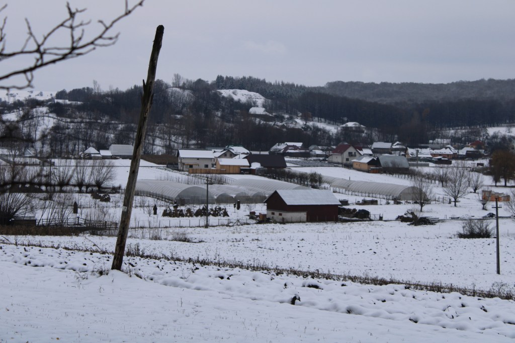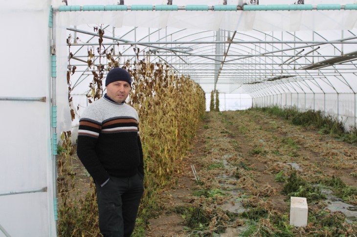 Când l-am sunat pe domnul Ioan Aioanei ca să-i spun că am sosit, el era în solarii. Curăţa terenul şi-l pregătea pentru primăvară. M-a întâmpinat împreună cu Ionuţ, mâna lui dreaptă, după cum mi l-a prezentat. Erau puţin supăraţi pentru că zăpada căzută le-a stricat nişte folie. Dar nu era supărarea aia a omului avid după avere. Ci a omului gospodar, amărât că nu apucase să facă ce trebuie, la timp. „Nu ne-am aşteptat să cadă acuma zăpadă, că de ani de zile n-am mai avut zapadă în noiembrie. Dacă ştiam că vine, tăiam folia şi nu se mai întâmpla nimic. Dar de acum asta e. Ne descurcăm noi, fie ce-o fi”.