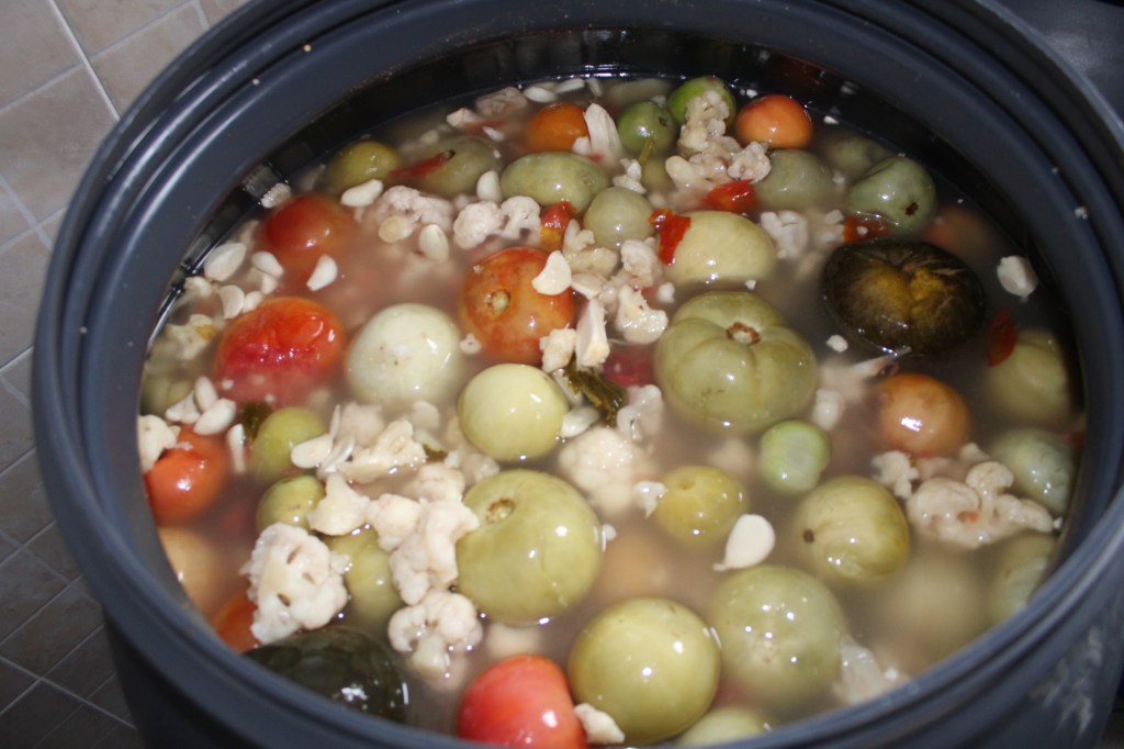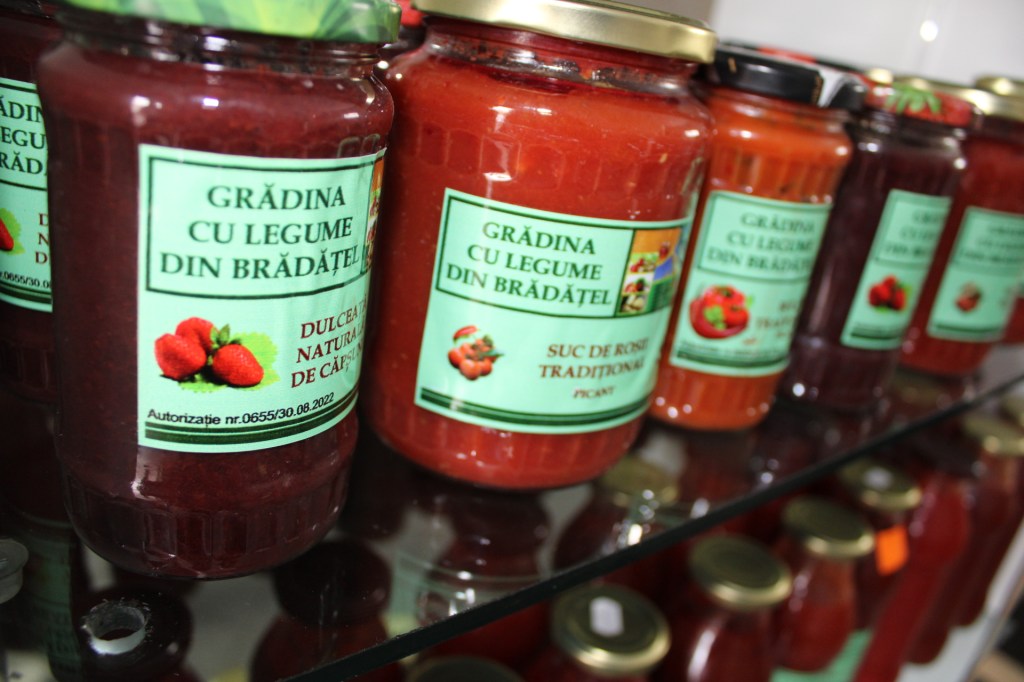 Spre încheierea vizitei noastre am vizitat şi sala de procesare. Pentru că pe lângă răsadurile şi legumele comercializate, „Grădina cu Legume din Brădăţel” se ocupă şi de procesarea acestora, rezultând nişte nişte minunăţii gastronomice de mai mare dragul. Zic asta pentru că am avut bucuria să le gust. Astfel, dacă ajungeţi la „Grădina cu Legume din Brădăţel” veţi găsi bulion de calitate excepţională, suc de roşii, zacuscă de toate neamurile (gustoasă de parcă nu-ţi mai vine a mânca carne!), dulceţuri ca la mama acasă, o salată de bureţi de îmi plouă în gură şi acuma când scriu aceste rânduri, castraveţi muraţi cu gust de odinioară, gogonele murate, varză murată, ardei muraţi, ş.a.m.d. Toate făcute tradiţional, fără conservanţi, E-uri, potenţatori de gust sau alte „chimicale” care distrug bunul gust al produselor de masă. „Am început să procesăm din cauza pieţei. Pentru că sunt momente când piaţa este saturată de produse de sezon, iar atunci preţul legumelor şi fructelor ajunge să fie prea mic ca să-ţi convină să vinzi. Aşa că în astfel de momente le prelucrăm, le punem la borcane sau butoaie şi le vindem mai târziu când este cerere. Aşa reuşim să nu ieşim în pierdere”– ne spune dnul Ioan.