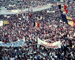 Seară de seară, timp de 3 luni, s-au adunat sute de mii de români pentru a scandaliza ”Jos comunismul”, ”Libertate”. La balconul Universității s-au perindat numeroși vorbitori anticomuniști, care-și doreau o țară ca afară.