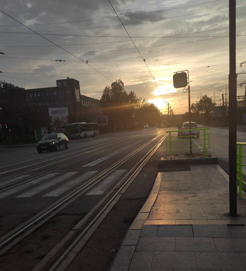 Totuși, azi se întâmplă ceva. Nu îți dai seama ce, dar aerul pare… altfel. Mai… viu? Și cerul… culorile lui par mai intense, norii, mai fini, soarele, mai măreț. Pentru prima dată în… câțiva ani, probabil, te oprești. Te uiți în jur, la balcoanele în care se mai vede câte o floare roșie, la pereții înalți, uniformi și impunători ai blocurilor, la bulevardul care se întinde în fața ta, scăldat de lumina răsăritului… Asta nu ține mai mult de un moment, căci mersul orașului te pune din nou pe fugă. Dar a fost destul. Destul cât să realizezi că s-a schimbat ceva, nu atât în jurul tău, cât în tine.